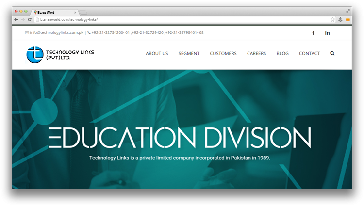 Technology Links is a private limited company incorporated in Pakistan in 1989. Its head office is located in Karachi and it has branches in all major cities in the country. With staff strength of over a hundred, and a management composed of highly qualified and experienced professionals, the company caters primarily to requirements in the health, research, Scientific and engineering education sectors. Thus, Technology Links is perhaps the only company in Pakistan, which provides meaningful links, under one roof, to the educationist, doctor, scientist, Industrialist and engineer alike. As well as this, the company also supplies equipment and machinery related to industry and infrastructure development. |
