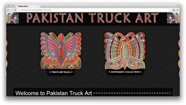 | Description | This site is dedicated to the celebration and promotion of Pakistani truck art. Anyone who has been to Pakistan knows that the sight of a fully decorated truck is unforgettable. A truck embellished from bumper to bumper with paint and colorful, sculpted metal is expressive and captivating in ways that few other artistic media can duplicate. Decorated Pakistani trucks declare a dazzling, exuberant artistry that is unmatched on vehicles anywhere else in the world. |