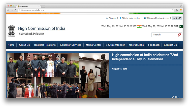| Description | The High Commission of India, Islamabad is the diplomatic representation of the Republic of India in Pakistan. It serves as the official channel in Pakistan for diplomatic and official relations and interaction between India and Pakistan. |