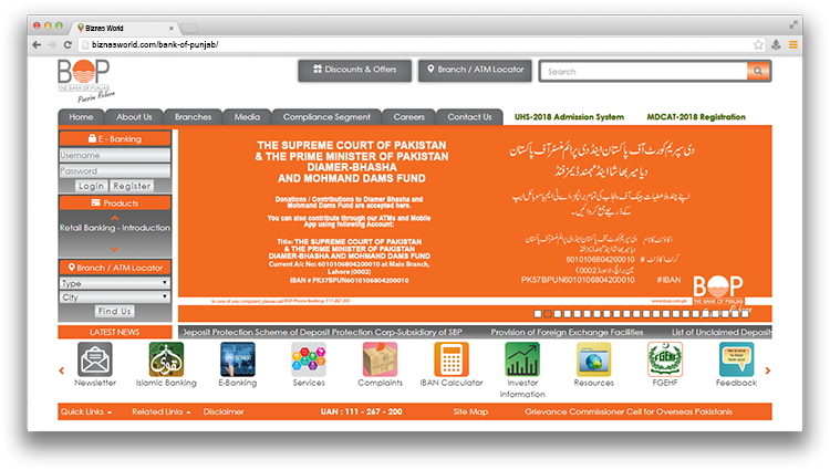 | Description | BOP, Bank of Punjab, offers retail, agriculture and commercial banking services along with e-banking. Also committed to delivering customer satisfaction, developing business integrity, and establishing pride in the people. | |