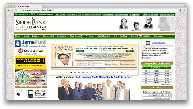 | Description | Sindh Bank Limited, offers retail, agriculture and commercial banking services along with women empowerment program. | |