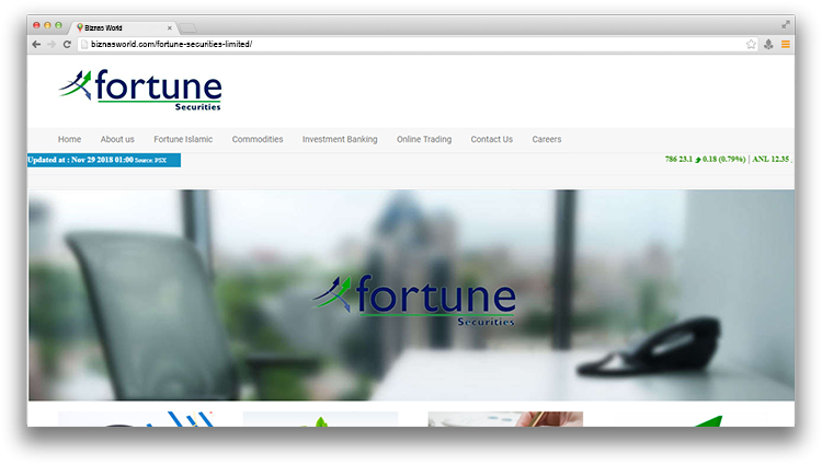 | Description | Fortune Securities Ltd (FSL) is a corporate member, Karachi Stock Exchange (Guarantee) Ltd., Pakistan’s largest stock exchange. It was incorporated in 1995, as an unlisted public limited company and has been providing agency broking services to domestic investors for over a decade. | |