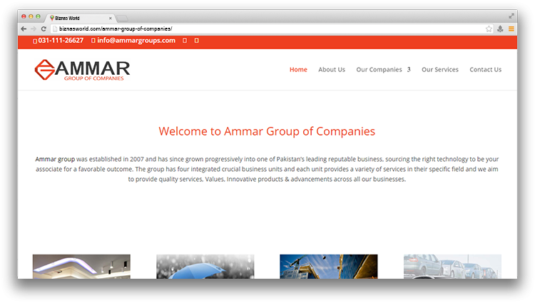 | Description | Ammar Group of Companies was introduced in 2009, since that range of our services and products has grown with the circumstances. To keep pace with the need of our valuable clients, we have a well managed team of engineers, consultants & technicians to intricate services & Products for residential, commercial and industrial sectors. | |