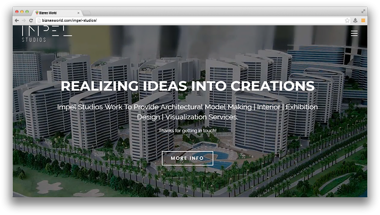 | Description | Impel Studios is a Dynamic and forward looking architecture firm. Our work provide Architectural Model Making, Visualization, Interior design, specializing in the design of Modern Residential, Retail, Corporate, Hospitality, Exhibition Design, projects. | |