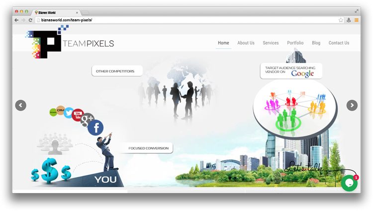| Description | TeamPixels is a company of young and innovative people with plenty of new ideas oriented to your business’ success. Our experience and long-term business activity on the market makes us special from all the others. We are keeping up with the pace of modern design and technology. |