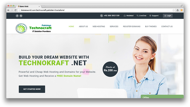 | Description | Technocraft Pakistan is a leading Web Hosting company in Pakistan. It also provide web designing services, SEO services since 2001. Technocraft pakistan also provide dedicated servers, vps, reseller hosting in pakistan and worldwide. | |