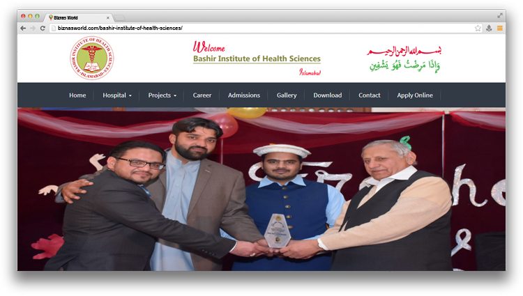 | Description | Bashir Institute Of Health Sciences, established in Feb, 2014 is a pioneer Allied Health Sciences Medical Institute located in the lush green valley of Capital territory Islamabad just 15 minute drive from Diplomatic Enclave. It is situated on an area of 52000 sq. ft. with a covered area of 34000 sq. ft. spacious building. The purpose is to give standard health education in the capital of Pakistan and ensuring that students may develop the true mindset of health professio |