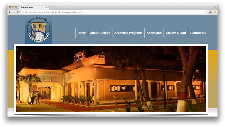 | Description | Hailey College of Banking & Finance was established on 26th March 2003 as the fifth Constituent College of the University of the Punjab in the premises donated by his Excellency Sir Ganga Ram for advancement of education in Commerce. At the time of inception, Hailey College of Banking & Finance offered BBA (Hons.) and MBA programs in the discipline of Banking & Finance. The Curriculum was developed after in depth study of the needs of Financial and Corporate Sectors. The focus was to equip the students with strong academic background and ongoing business practices so that the graduates of the College can meet different challenges in their profession. Product of the College was well received by Industry. |