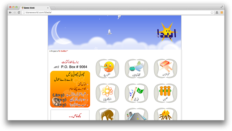 | Description | The largest Urdu web site for the kids containing hundreds of Urdu stories,latife,encyclopedia, sairs, tafreeh, masail, naam etc. |
