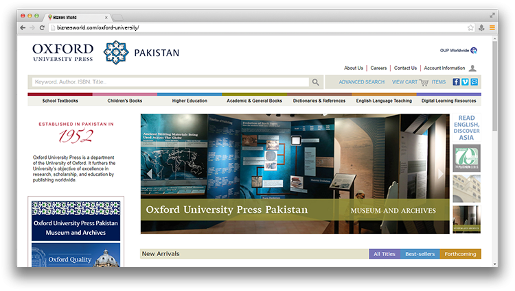 | Description | OUP Pakistan’s publishing operations fall into four distinct areas: school texts and library, higher education, academic, and lexical and general reference. |