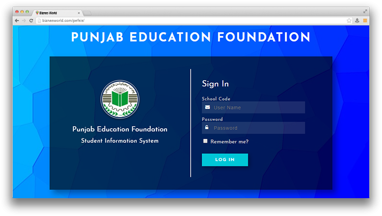 Education Pefsis Posted on August 22, 2019March 18, 2020 by Description Punjab Education Foundation Student Information System. Country Pakistan Website http://pefsis.edu.pk/ Indeed Engine Clothing