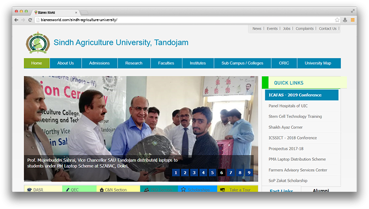 | Description | Doctoral Granting Research University, Official Website for Sindh Agriculture University, Tandojam Providing an overview of academic Programs, Campus life, etc. | |