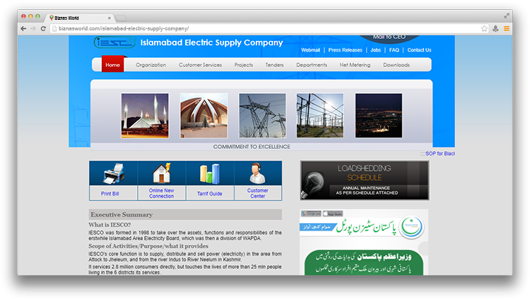 | Description | IESCO was formed in 1998 to take over the assets, functions and responsibilities of the erstwhile Islamabad Area Electricity Board, which was then a division of WAPDA. |