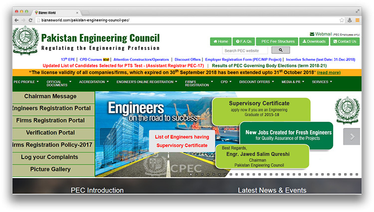 | Description | PEC interacts with the Government, both at the Federal and Provincial level by participating in Commissions, Committees and Advisory Bodies. PEC is a fully representative body of the engineering community in the country. | |
