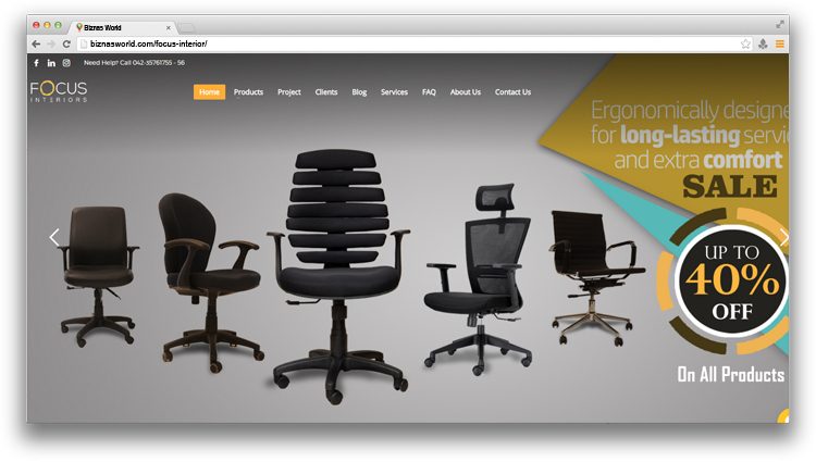 | Description | Focus Interiors (Pvt) Ltd mission is to provide the best quality at the most competitive prices to our customers with High-quality conscious. Our goal is to make its products comparable to the finest in the world. Our long term aim is to put Pakistan on the world Furniture map. |