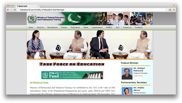 | Description | This site is a portal of Ministry of Education & Trainings, information about Organogram, Government of Pakistan. | |