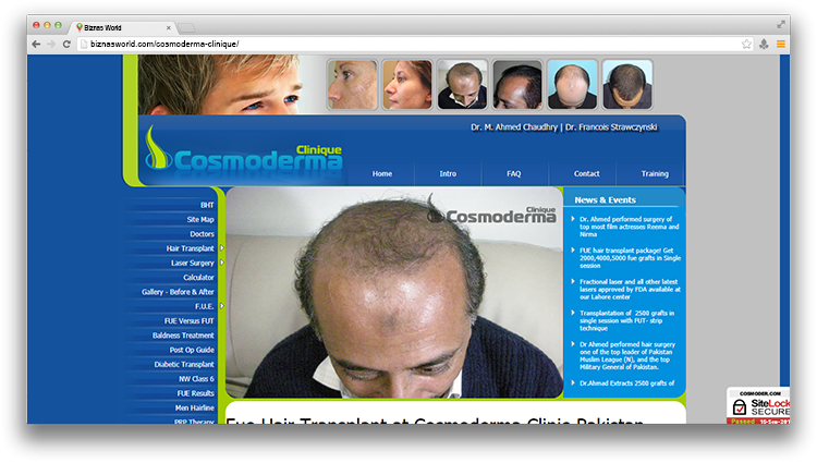 | Description | Offers hair transplant in Lahore, by Laser cosmetic and hair transplant surgeon. Consultation available for hair transplant, hair restoration, hair transplantation or hair replacement surgery. |