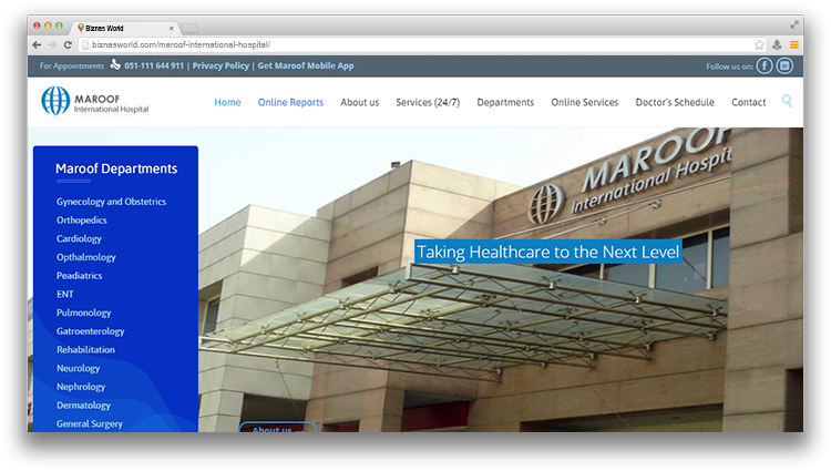 | Description | Maroof International Hospital always ensures to keep alive its tradition of facilitating its corporate partners for basic health facilities. |