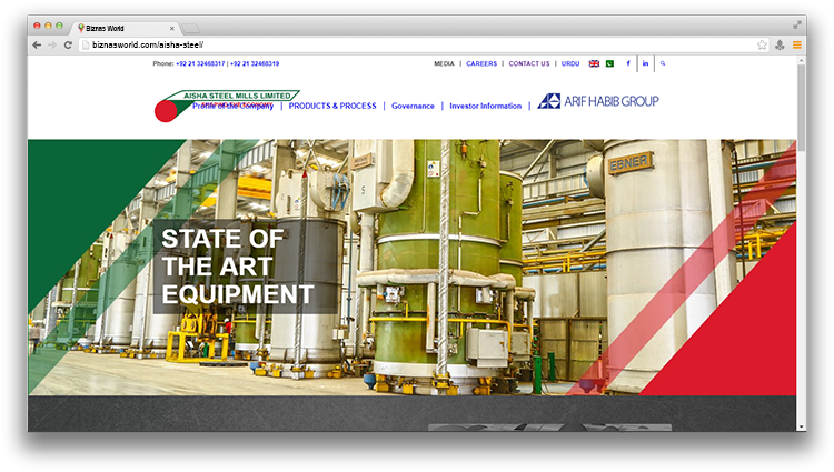| Description | Aisha Steel Mills Limited (ASML) is a Group Company of Arif Habib. It is a state-of-the-art cold rolling complex with a nameplate capacity of 220,000 metric tons per year. |