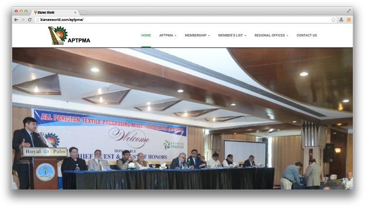 | Description | Textile Processing is one of the most value-added and export-oriented sector of Textile Industry in Pakistan. All Pakistan Textile Processing Mills Association (APTPMA) which represents textile processing units of Pakistan, is a registered trade body which is duly affiliated with the Federation of Pakistan Chambers of Commerce & Industry (FPCCI), the apex Trade Organizations of Pakistan. |