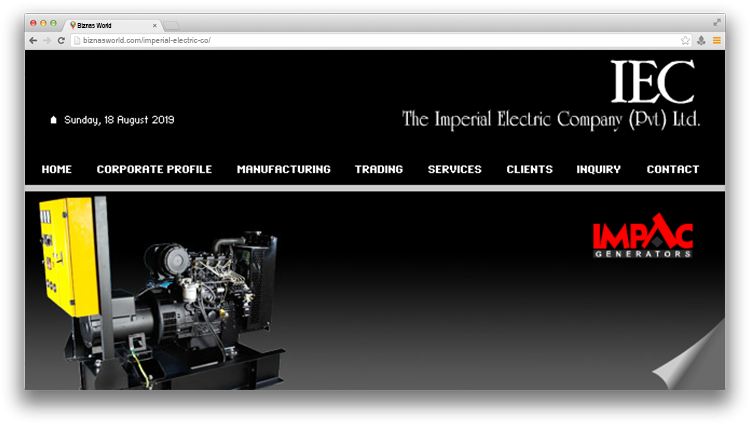 | Description | The Imperial Electric Co. (Pvt.) Ltd. was set up in 1931. Since it’s inception, it has provided its clients with world-class products and services. For over 80 years, our clients have relied on us for innovative and economical solutions to their problems. Highly qualified individuals ar employed specializing in various branches of engineering, along with sales and marketing personnel to deal with a diverse customer base. |