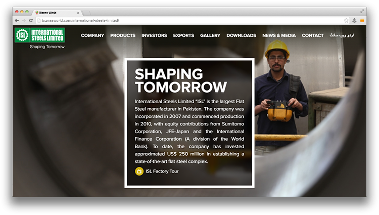 Description International Steels Limited “ISL” is the largest Flat Steel manufacturer in Pakistan. The company was incorporated in 2007 and commenced production in 2010, with equity contributions from Sumitomo Corporation, JFE-Japan and the International Finance Corporation.