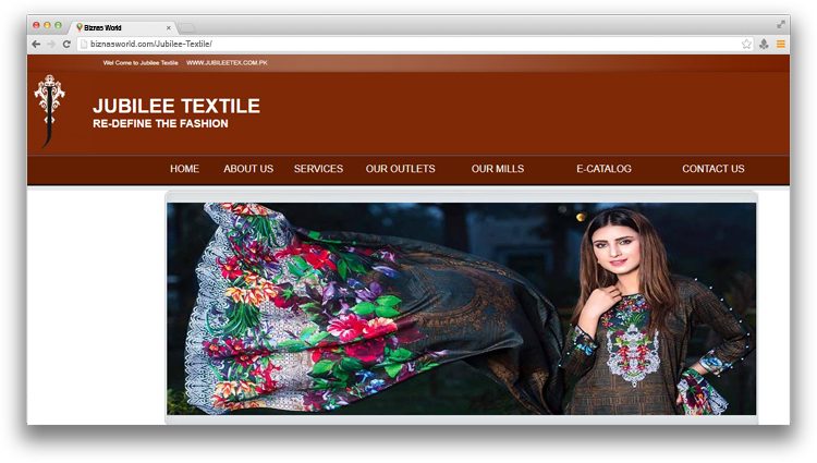| Description | jubilee Textile Mills was incorporated in 1984 as private limited company in SECP. In 1992 we added printing department in our factory that also got surprising response.Jubilee Textile is a Prossecing unit.The Different Brands in all over the Pakistan are being Processed here. As per commitment to deliver our customers best possible clothes with optimum quality and variety through continues adoption of new ideas and designs with best process and machine. |