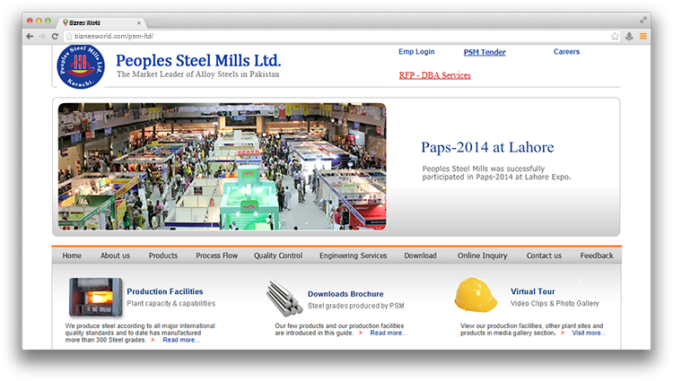 | Description | Peoples Steel Mills Ltd is a world class alloy and special steel manufacturer plant located in Karachi, Pakistan. It was set-up by the Government of Pakistan in 1975 with Japanese assistance. |