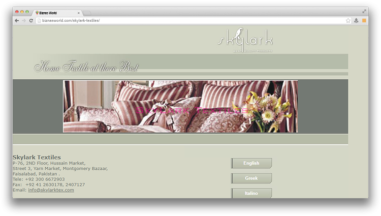 | Description | Skylark Textiles is located in Faisalabad, Pakistan. Company is working in business activities. |