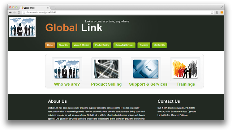 | Description | Global Link has been successfully providing superior consulting services in the IT sector and its relevant academic fields since its establishment. Being both an IT solutions provider as well as an academy, Global Link is able to offer its clientele more unique and diverse options. Our goal here at Global Link is to exceed the expectations of our clients by providing exceptional customer service, increased flexibility and greater value thus optimizing company’s growth. |