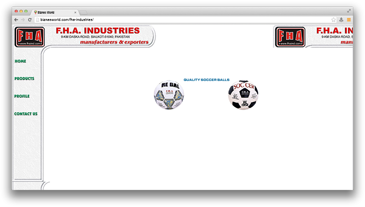 | Address | F.H.A. INDUSTRIES., 9. KM DASKA ROAD, SIALKOT. |