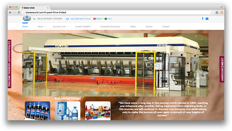 | Description | Tri-Pack Films Limited (Tri-Pack) was incorporated in 1993 as a jointventure between japan and Pakistan. | |