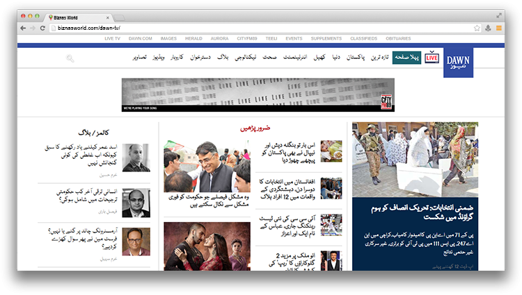 Advertising & Marketing, Arts & Entertainment, News & Media Dawn TV Posted on October 22, 2018April 27, 2020 by Description News channel owned by Dawn news group. Country Pakistan Email editor@dawn.com Phone No 92-21-111444777 Website http://dawnnews.tv/ Pakistan Bee UrduPoint Network