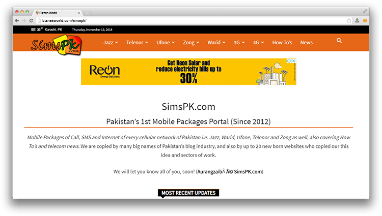 | Description | Pakistan’s 1st Mobile Packages Portal (Since 2012). Mobile Packages of Call, SMS and Internet of every cellular network of Pakistan i.e. Jazz, Warid, Ufone, Telenor and Zong as well, also covering How To’s and telecom news. | |