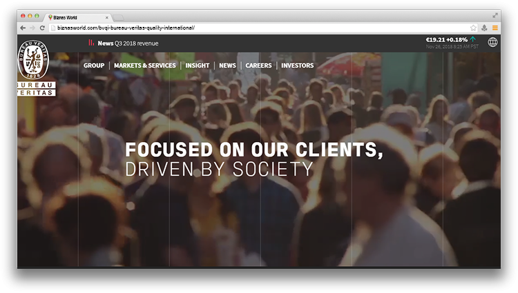 | Description | Bureau Veritas provides a vast range of services specialized in inspection and audit, tests and certification applied to quality, hygiene and health, safety, environment and social responsibility. | |