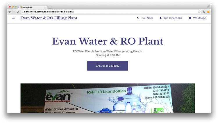 | Description | Evan Bottled Water offers a wide range of bottled water products for residential consumption. We deliver throughout Karachi and have filling stations available for your immediate needs. | |