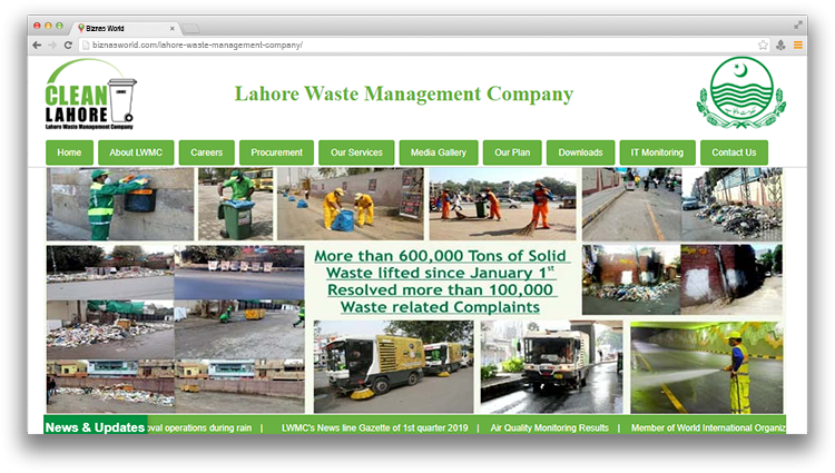 | Description | Solid Waste Management (SWM) has long been a neglected sector due to lack of strong commitment on the part of government. City District Government Lahore (CDGL) established LWMC under section 42 of the Companies Ordinance 1984 on 19th March 2010. The company is limited by guarantee having no share capital and is formed not for profit within the meaning of Section-42 of the Companies Ordinance. The LMWC is governed by a Board of Directors (BODs), headed by a Chairman. |