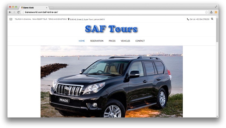 | Description | SAF Tours offers care rental services in Lahore including Punjab for a business trip, arrival or departure to airport, wedding ceremonies, pick and drop in Lahore, van or minibus rental. |