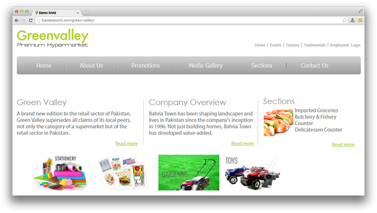 | Description | Green Valley: A brand new edition to the retail sector of Pakistan, Green Valley supersedes all claims of its local peers, not only the category of a supermarket but of the retail sector in Pakistan. |