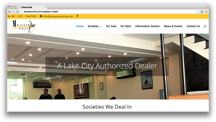 | Description | Moazzam Estates we believe in perfection and professional team work, our firm is adaptable to latest trends in the real estate business and we are keen to provide quality services to our clients wherever and whoever they maybe. Being authorized agents and working with Lake City since many years now, with its unique blend of amenities of a gated community and exclusive lifestyle Lake City is not only an excellent lifestyle destination but also a very solid investment for years to come. |