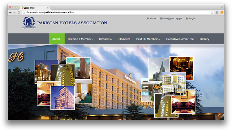 | Description | Pakistan Hotels Association was established in 1963 under Section 3 of the Trade Organizations Ordinance, 1961 and the license was granted by the Ministry of Commerce. All the compliance of the required law are being fulfilled till to date and according to the Ministry of Tourism, this body is the only representative body of hotel industry in Pakistan. | |