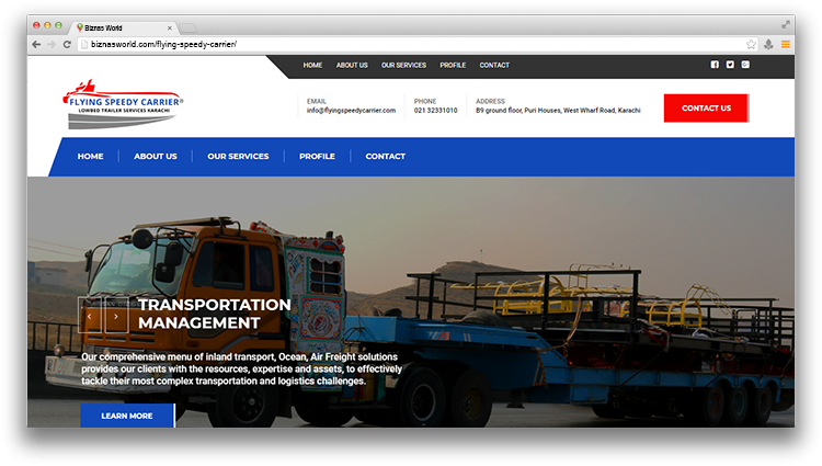| Description | Flying Speedy Carrier Goods Transport Company is the promising logistic services provider across the country. We are offering a complete range of services to receive all imports and local supplies precisely to the needs of all our customers. | |