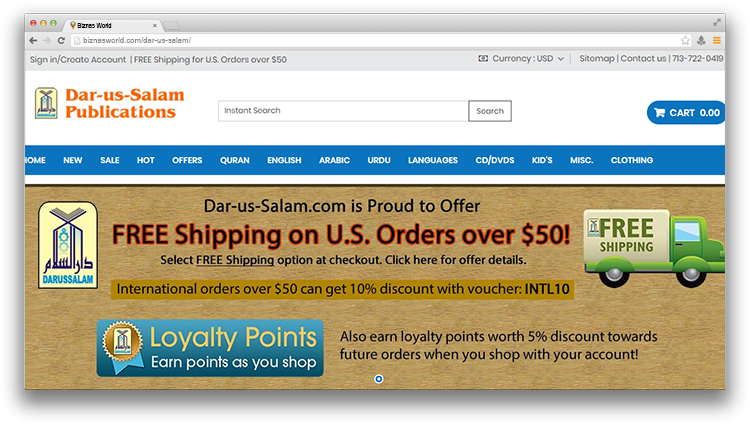 | Description | Dar-us-Salam Publications is your source for authentic high-quality Islamic books and products. We are the Houston branch of Darussalam Publishers and Distributors headquartered in Riyadh Saudi Arabia. We offer low prices and great service. We ship internationally throughout the world and also do wholesale. |