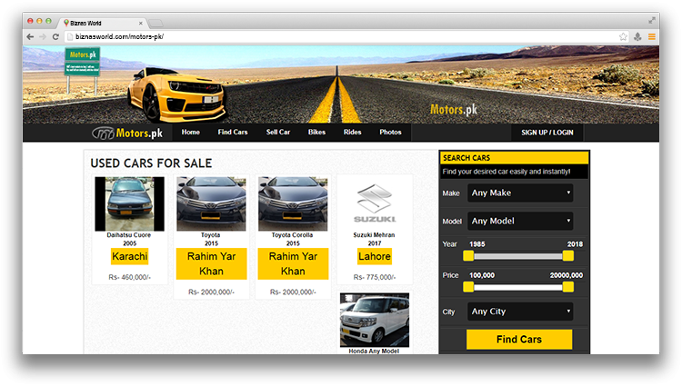 | Description | Buy and sell used cars in Pakistan and compare Pakistan car prices at Motors.pk, an online data bank of Pakistan autos. | |