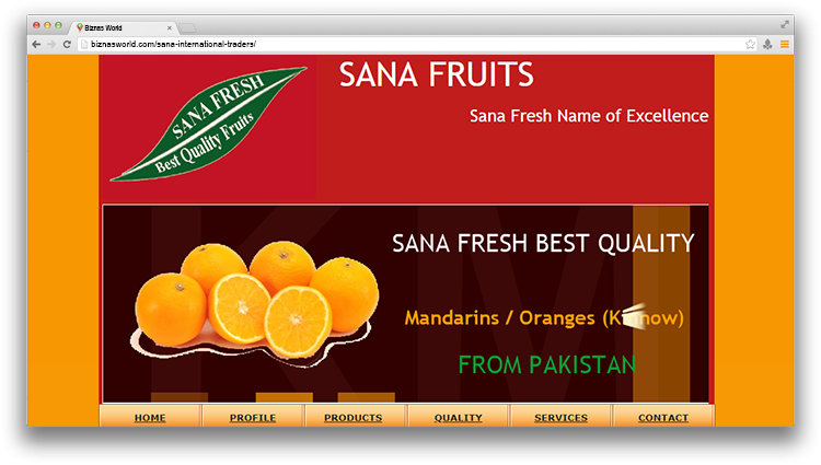 | Description | I would like to introduce my company as an exporter of fresh fruits & Vegetables. Sana International Traders (SANA FRESH) is a professional, trustable, international fruits and vegetables export company. We are providing export facilities by-Air and by-Sea from Pakistan. | |