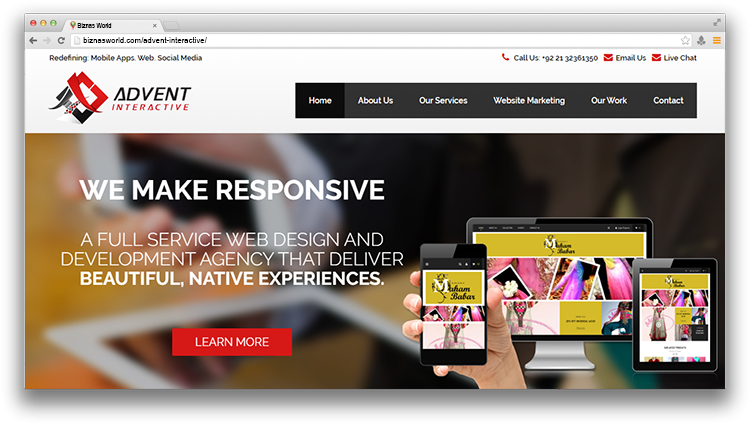 | Description | Advent Interactive is a fast growing and most well-diversified interactive web & digital marketing agency based in Karachi, Pakistan with regional offices. | |