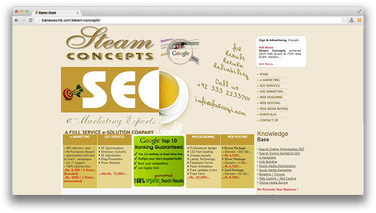 | Description | Web site designing and hosting. Website contains contact information and details of the offered services. |
